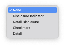코드에서는 위와 같이 accessoryType 속성과 editingAccessoryType 속성으로 설정할 수 있다.