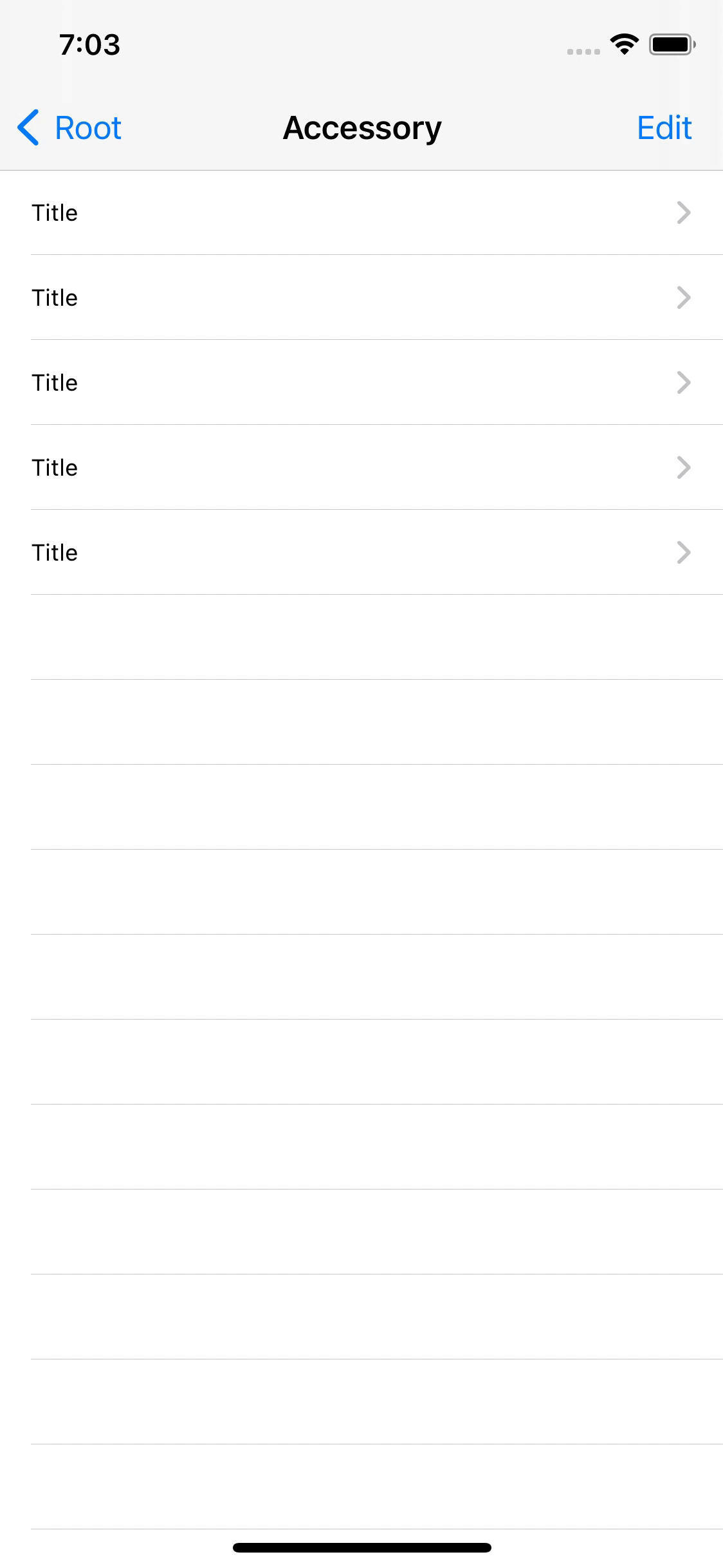 Editing Acc. 옵션으로 위와 같은 항목을 제공하지만 여기서 설정한 AccessoryView는 편집 모드에서 표시된다.