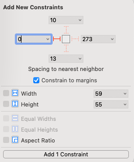 trailing 제약을 0으로 설정하고, 정렬 제약도 수직 중앙으로 설정한다.