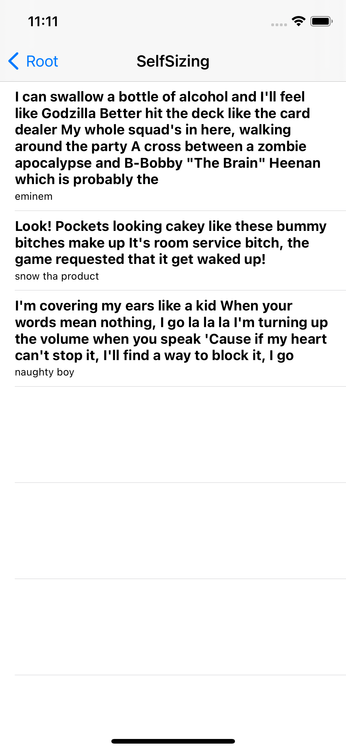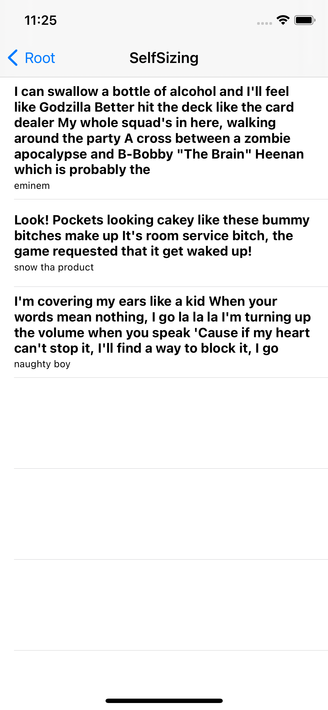 이번엔 tableView의 selfSizing을 활성화하고 실행해 보자.