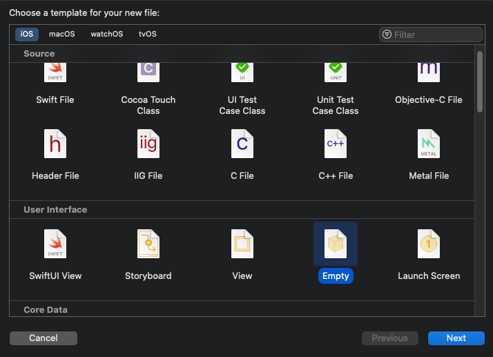 두 번째 파라미터로는 인터페이스 파일이 저장되어 있는 번들을 전달하는데 지금처럼 동일한 번들이라면 nil을 전달한다.