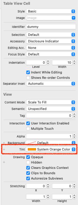셀의 attribute inspector에서 Tint 색상을 바꾸는 식이다.