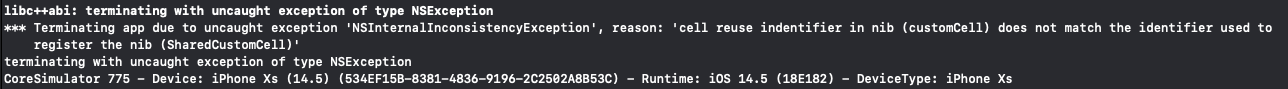 'nib파일의 식별자와 등록할 때 사용한 재사용 셀의 식별자가 다르다.'