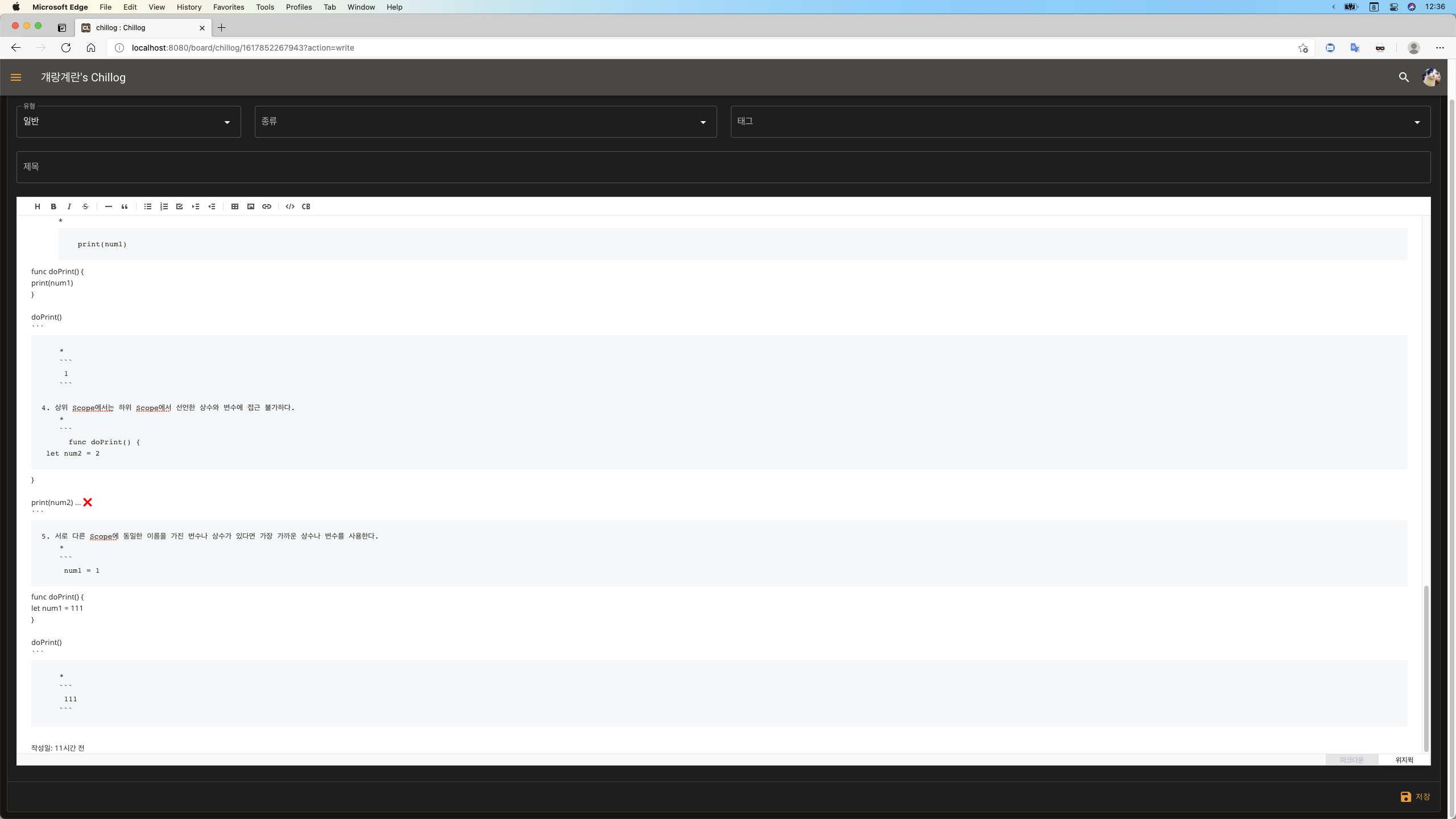 바로 직전의 swift 학습 정리 글이 그러하며, PC환경에서 글을 작성하는 경우 장문이 되거나 글이 복잡해 지는 경우가 있어