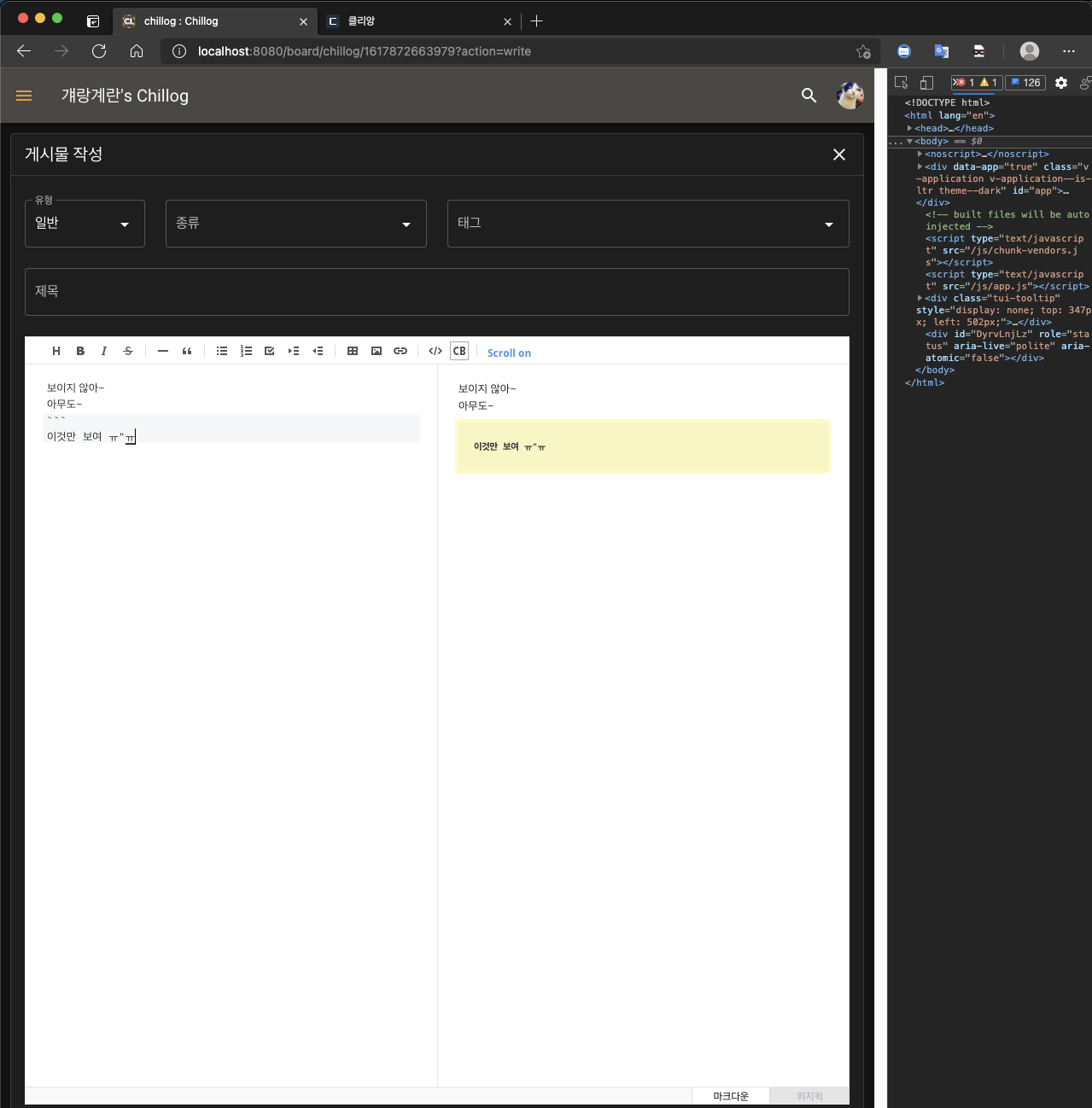 수정하려 마크다운에 들어갔다 나오면 글이 '개박살'이 나 있다. 😇