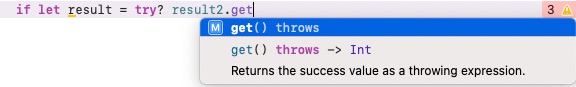 사진과 같이 함수의 자동 완성에 throws가 포함되어 있다면 try 키워드를 사용해야 한다.