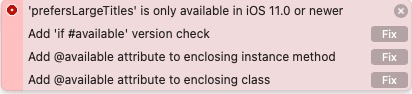 해당 속성은 iOS11.0에서 새롭게 추가된 속성으로 배포 버전이 10.0으로 설정된 지금은 사용할 수 없는 속성이다.