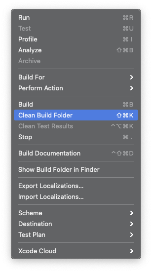 Product > Clean Build Folder