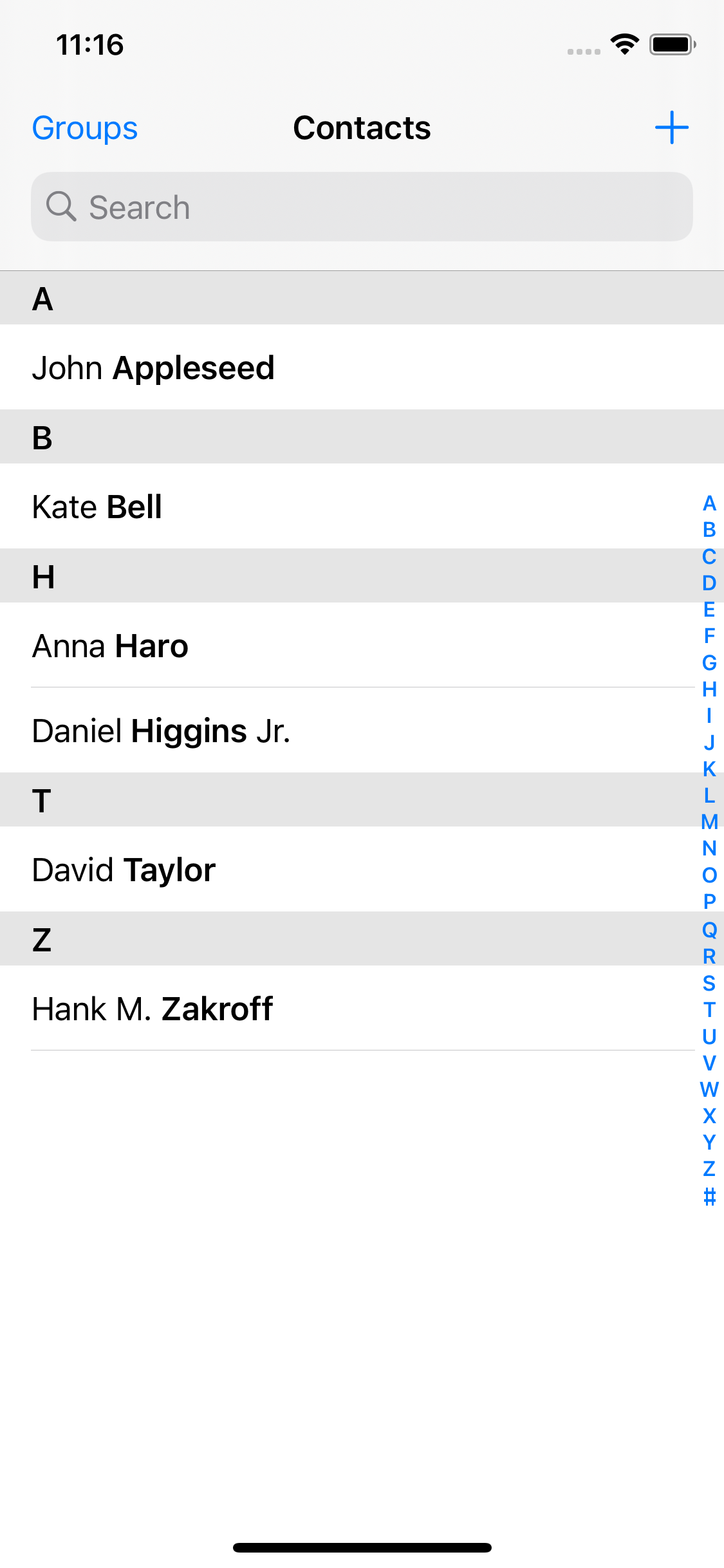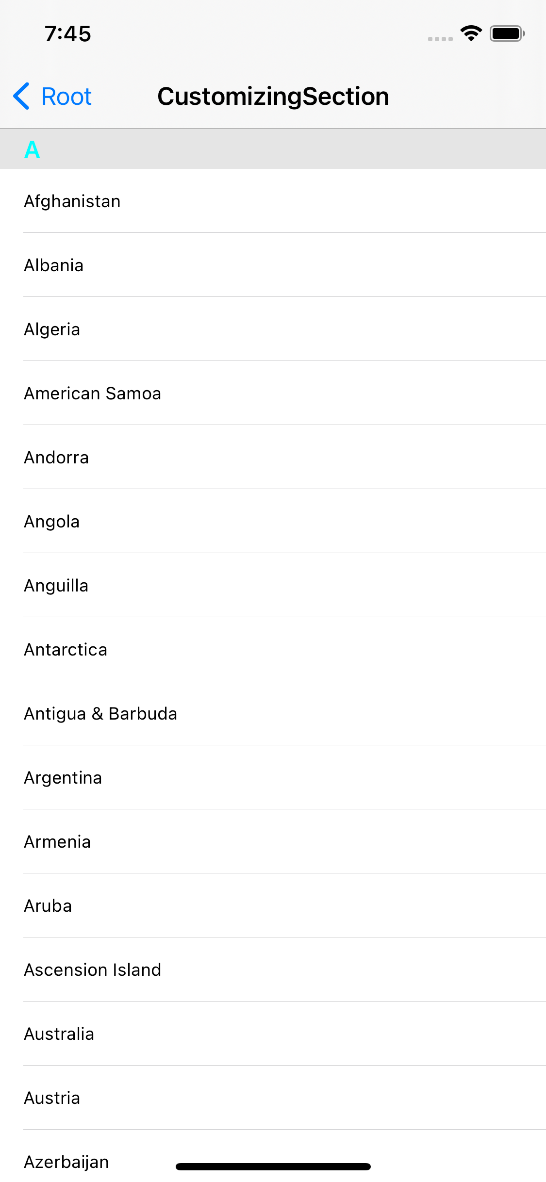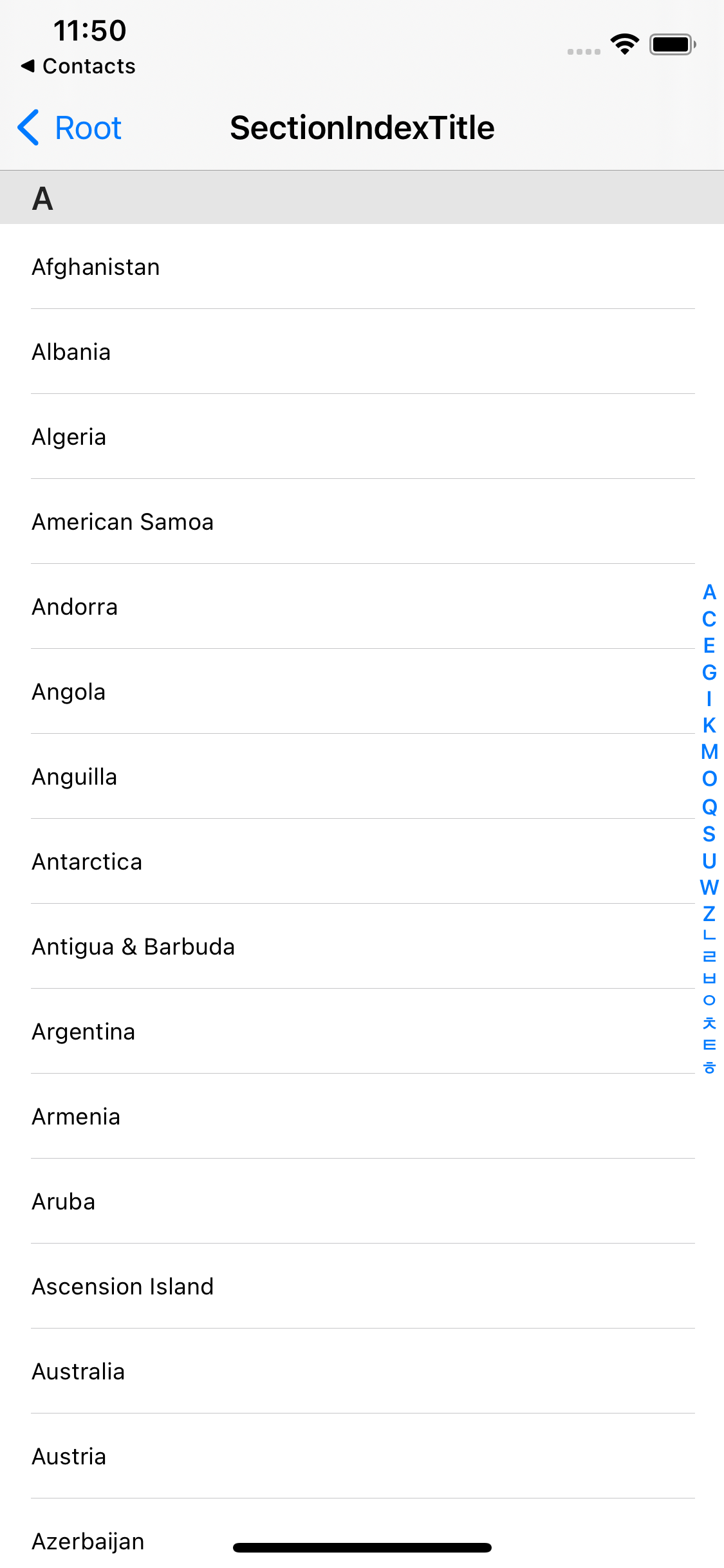 반환된 배열은 알파벳이나 초성에 따라 여러 섹션에 나뉘어 각각의 언어로 Table에 표시된다.
