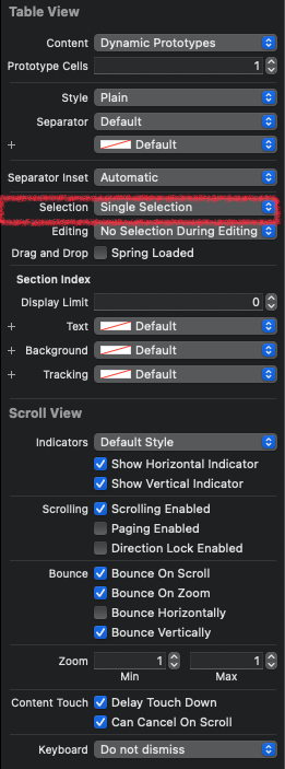 singleSelection에서는 선택된 셀을 다시 선택해도 변화가 없지만,