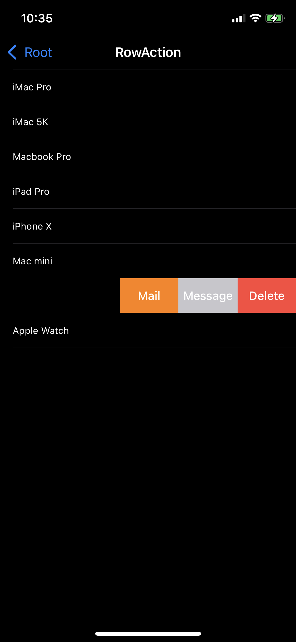 RowAction과 마찬가지로 배경색을 변경할 수 있고, 폰트 색은 흰색으로 고정되기 때문에 밝은 색을 사용하는 것은 지양해야 한다.