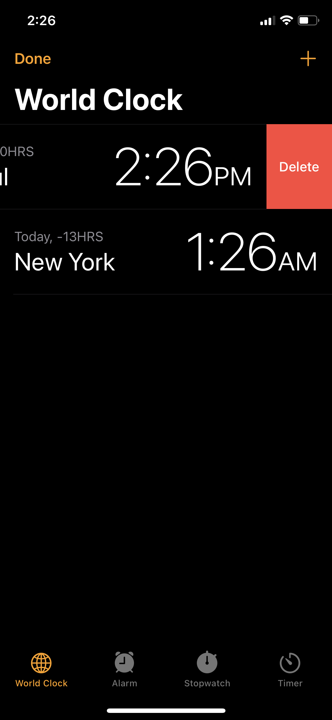 시계 앱에서 좌상단의 Edit을 터치하면 오른쪽의 편집 모드로 전환된다.