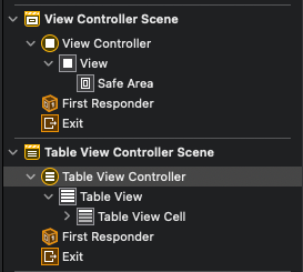 우측은 TableViewController의 모습이다.