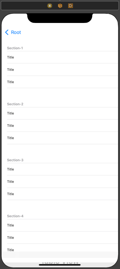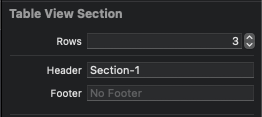 Document OutLine에서 section이 표시되고, Section의 Attribute Inspector에서 셀의 수와 Header와 Footer를 변경할 수 있다.