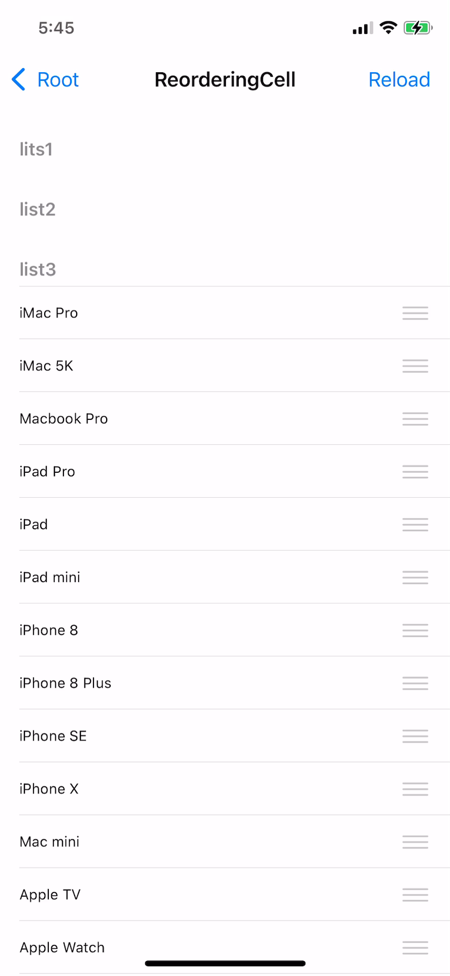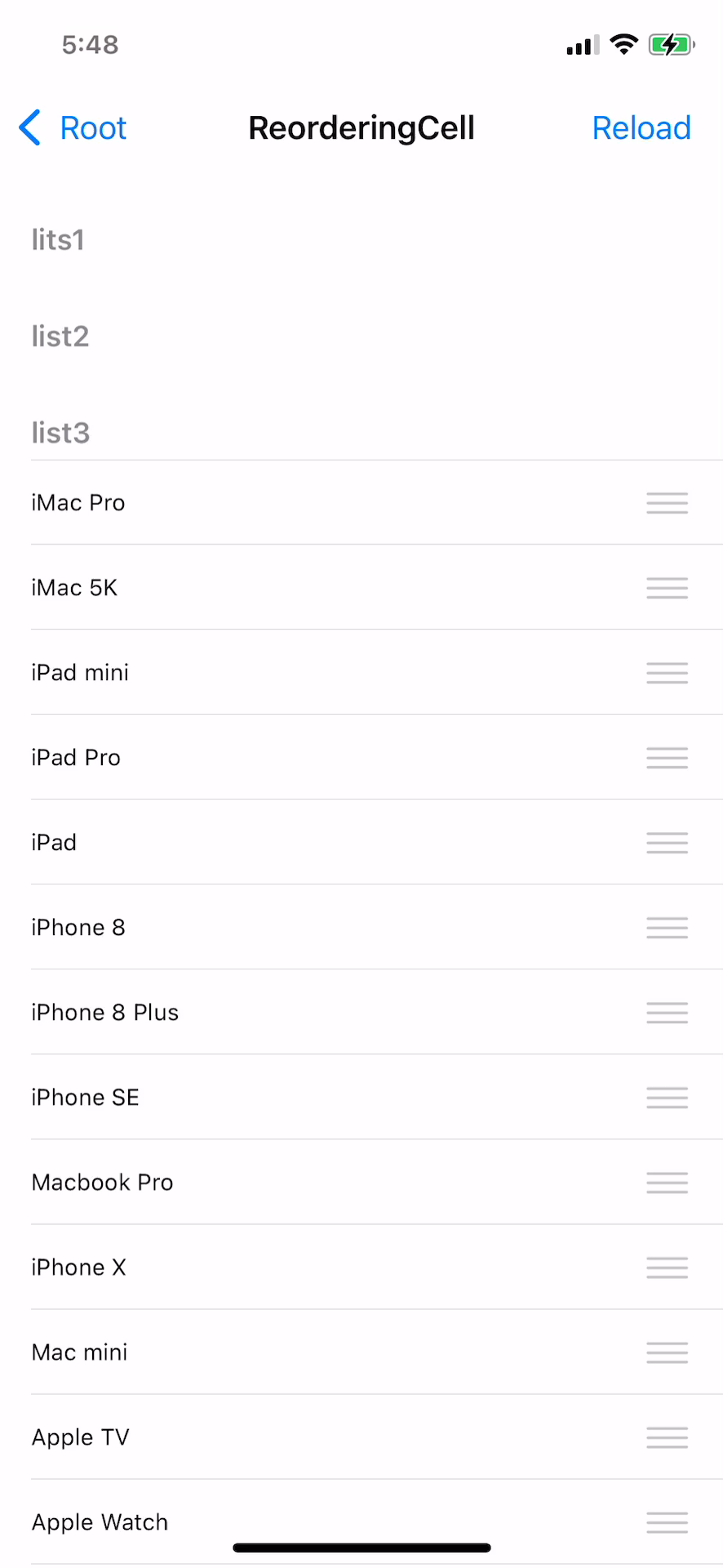 현재까지 적용된 화면을 보면 왼쪽의 여백이 사라졌고, 오른쪽에는 reorderingControl이 잘 표시되며,