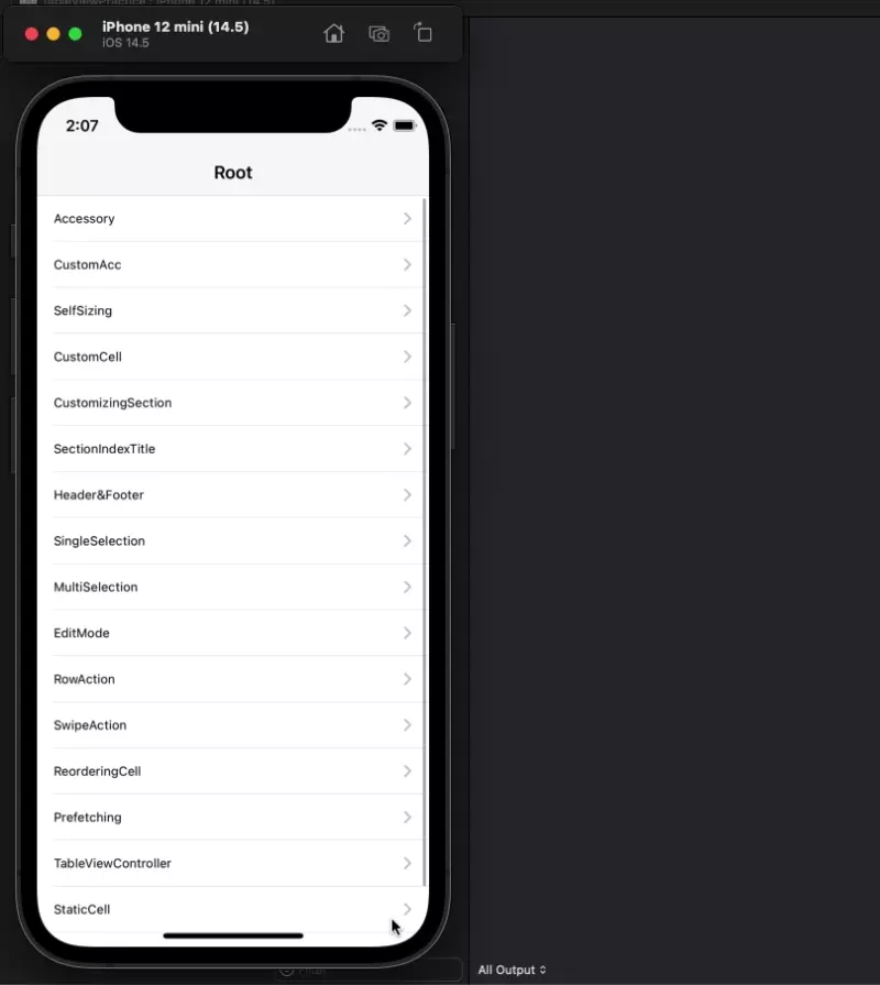 이렇게 구현한 tableView는 결과는 이전과 다를 바 없지만 조금 손쉽게 TableView를 구성할 수 있다는 장점이 있다.