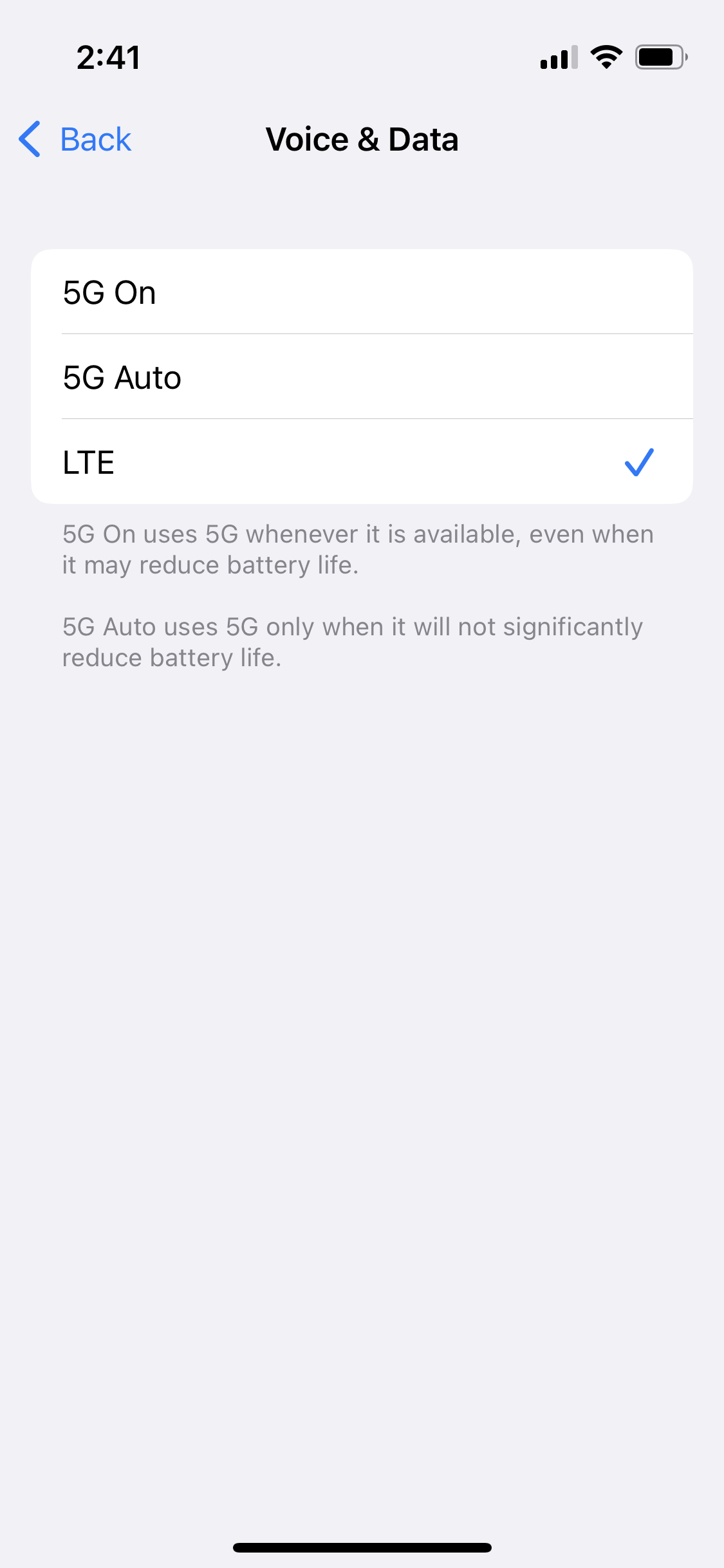 따라서 LTE만 사용하고 싶거나, LTE 요금제를 사용한다면 설정을 바꿔 5G로는 통신을 하지 않도록 설정해야 한다.