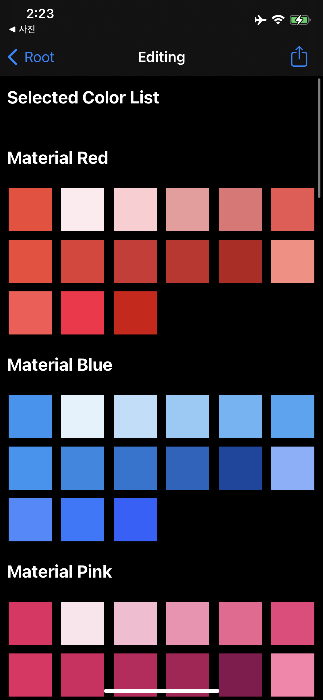 list에는 나머지 section에 나열될 색상 데이터를 저장한다.