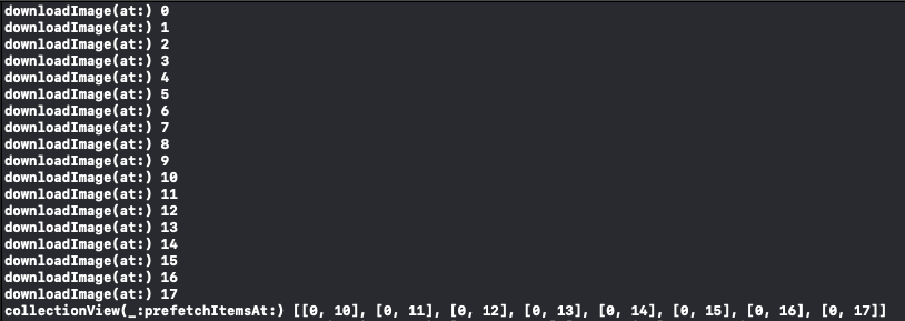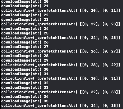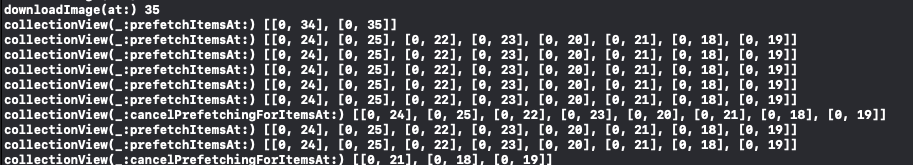 collectionView(cancelPrefetchingForItemsAt:)메소드는 취소되는 대상이 있을 때마다 호출된다.