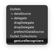 이후 Collection View를 끌어다 Pan Gesture Recognizer를 GestureRecognizers로 연결한다.