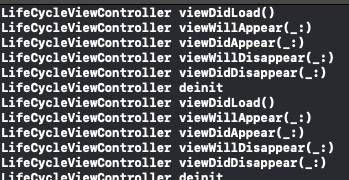 곧바로 viewDidDisappear가 호출된다. 이후엔 해당 신을 소유한 객체가 없기 때문에 소멸자가 호출된다.
