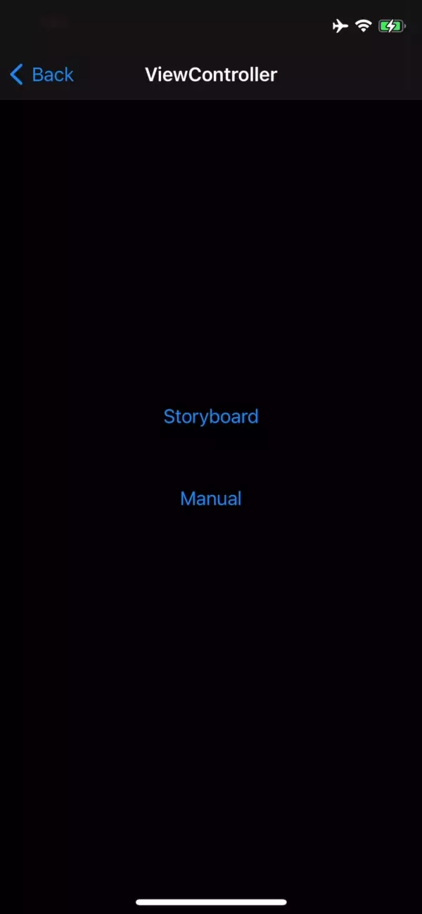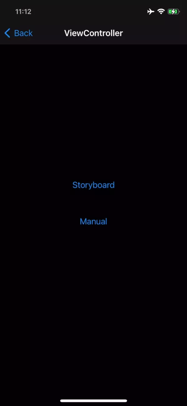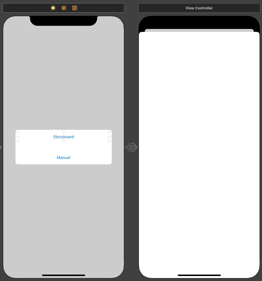 Manual Button을 누르면 코드로 작성한 View Controller가 표시된다.