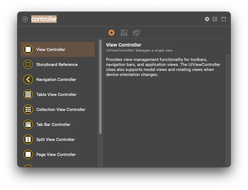 Control View Controller를 추가할 때는 첫 번째의 View Controller를 주로 사용한다.