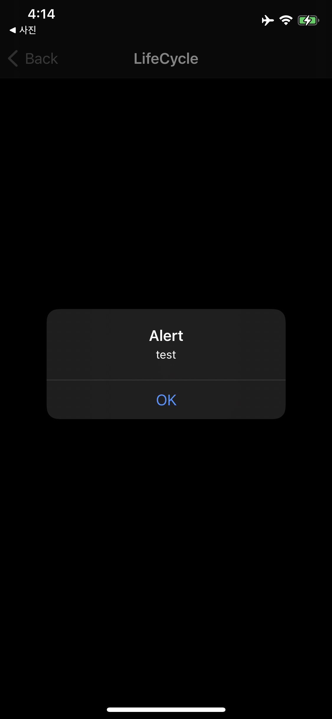 경고창이 표시될 때 Root View는 여전히 계층에 존재하므로 viewDidAppear 까지만 호출된 상태다.