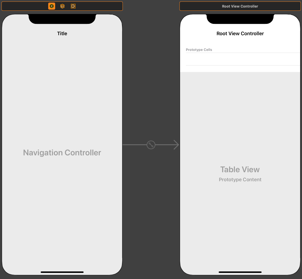 왼쪽에 존재하는 것이 실제 Navigation Controller이고, 오른쪽에 존재하는 것이 Child View Controller이다.