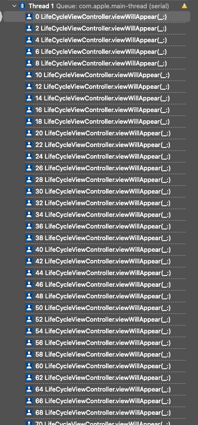이는 viewWillAppear가 호출되면 다시 동일한 메소드를 반복해 호출하는 재귀 호출이 무한히 반복된다.