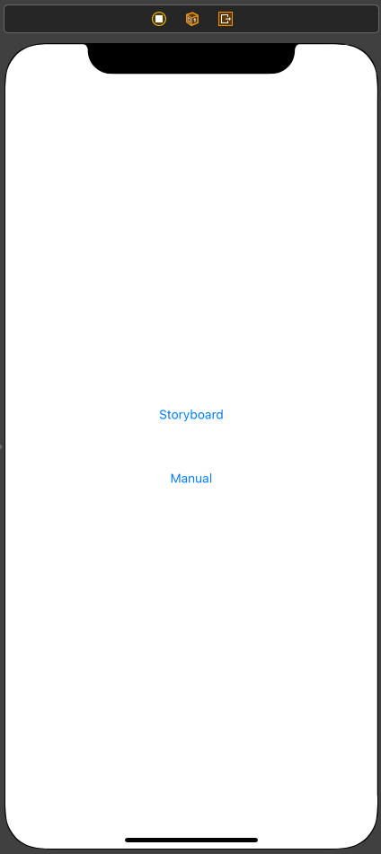 Manual Button을 누르면 코드로 작성한 View Controller가 표시된다.