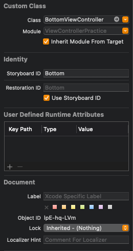 View Controller의 Identity Inspector에서 설정할 수 있다.