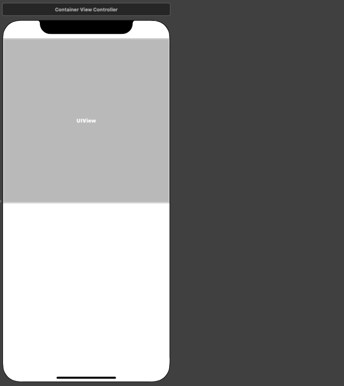 씬에 추가된 것은 Container View, 오른쪽에는 Container View에 해당하는 새로운 View Controller가 표시된다.