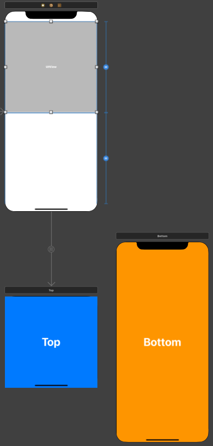 Top과 Bottom 씬을 상단의 View Controller에 표시하도록 구현한다.