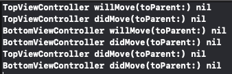BottomViewController에서 willMove 메소드가 호출된 것을 볼 수 있다.