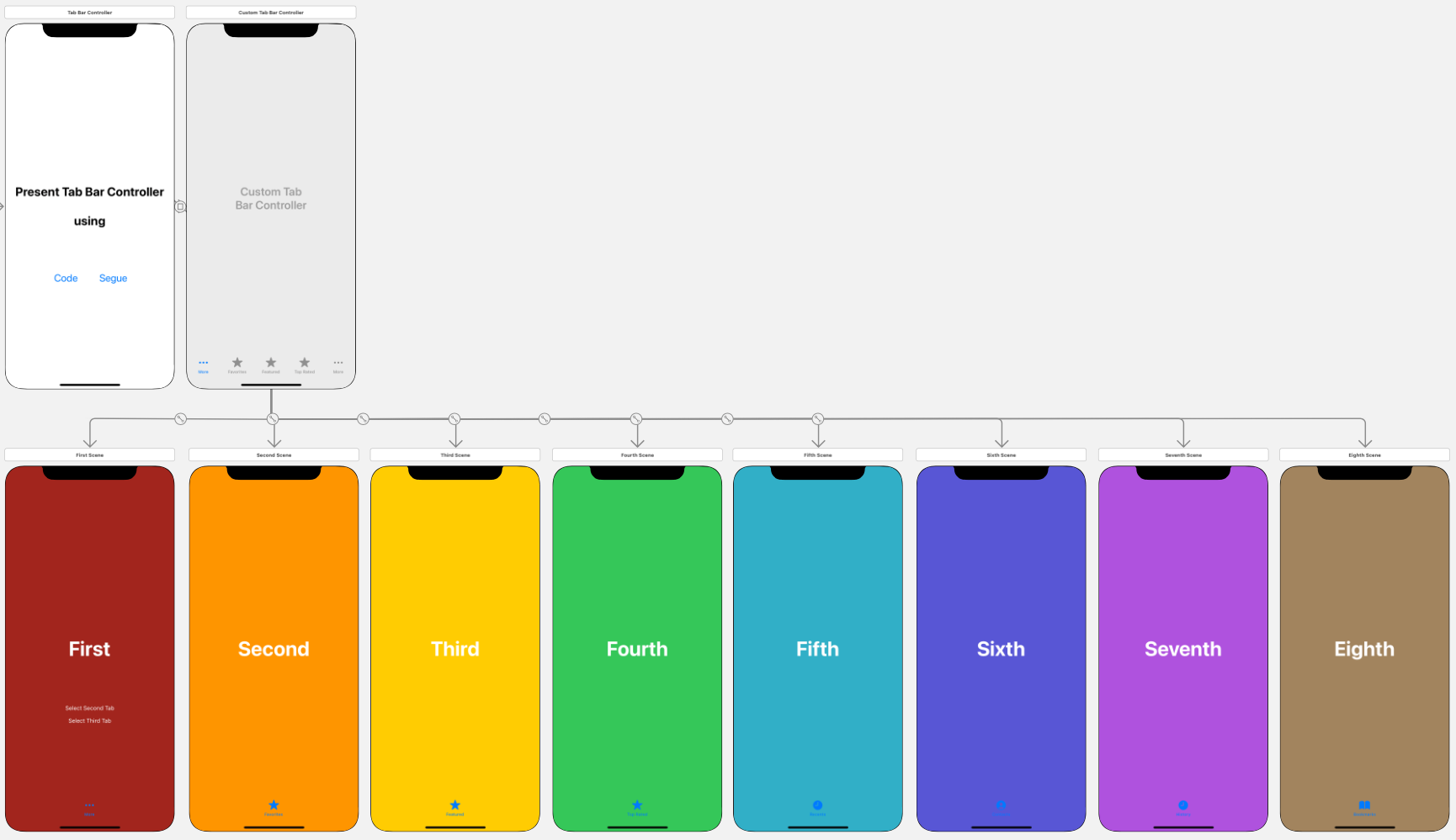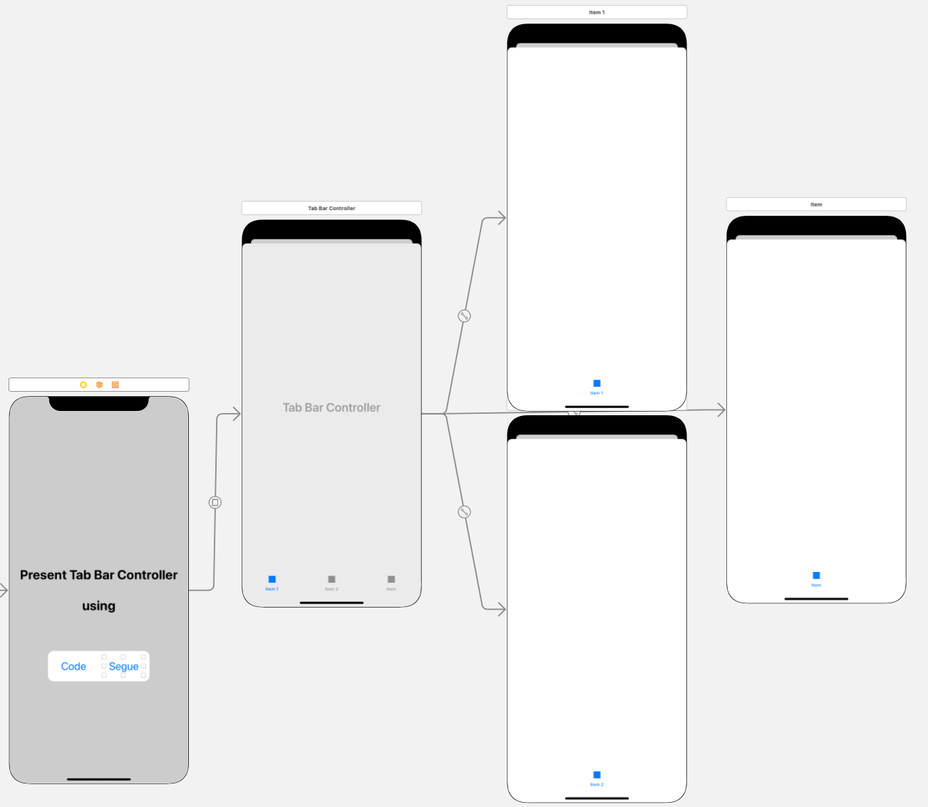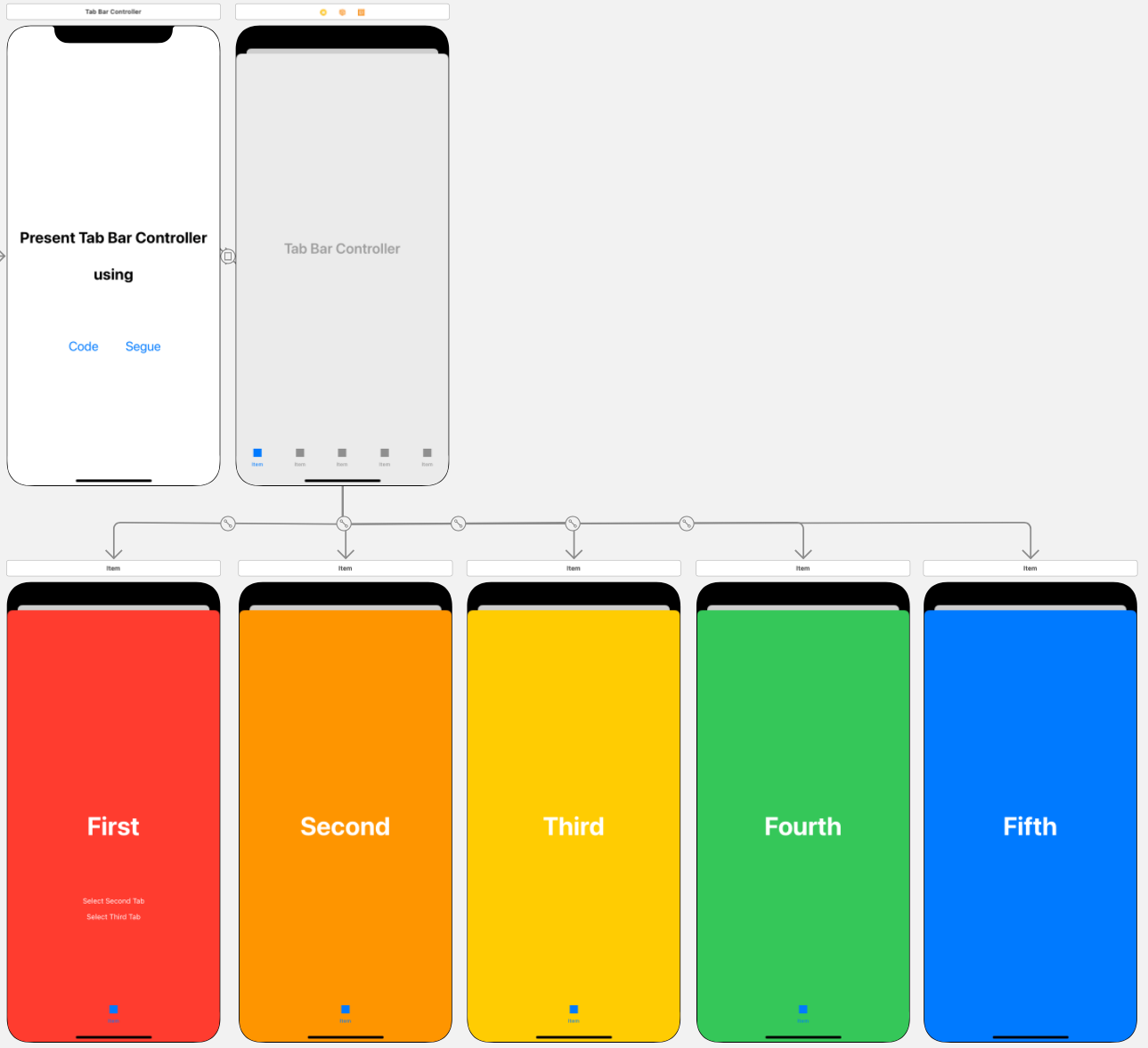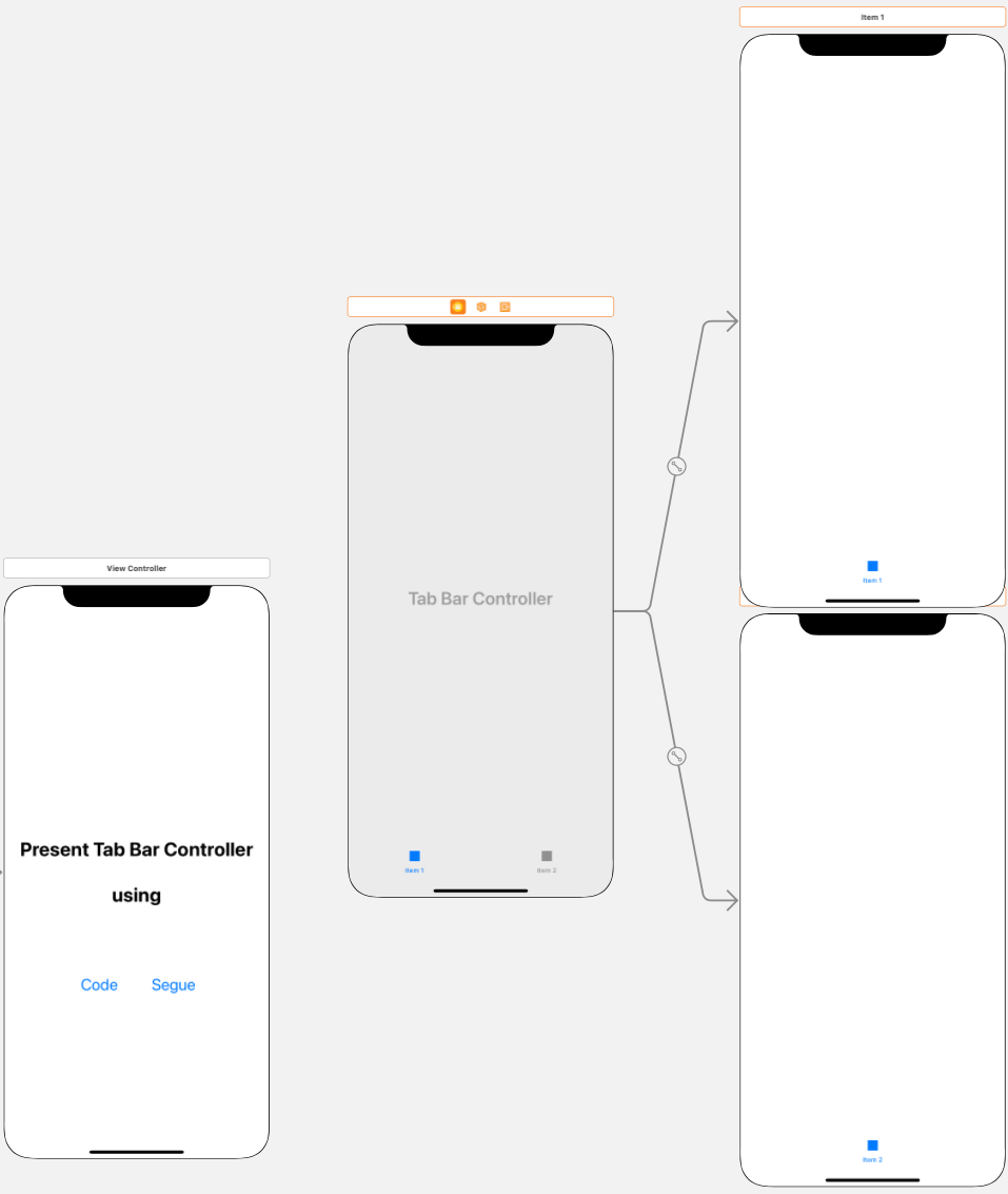 원래의 씬과 Tab Bar Controller를 Modally로 연결한다.
