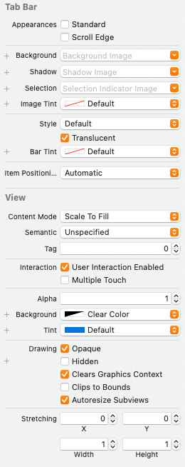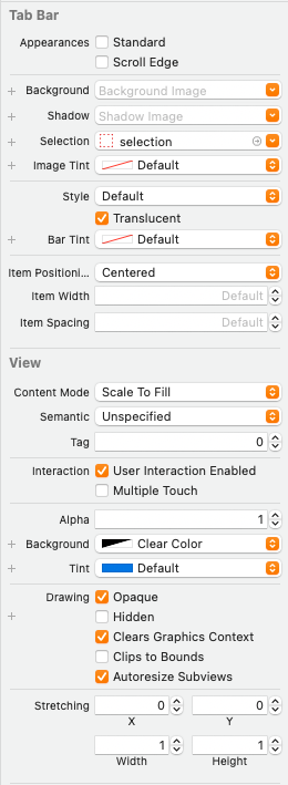Tab Bar를 선택하고 Attribute Inspector를 확인해 보면