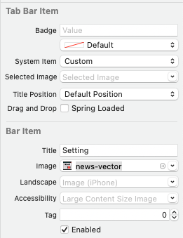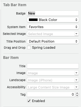 해당 속성을 통해 Tab Bar Item의 Title, Image, Badge를 설정한다.
