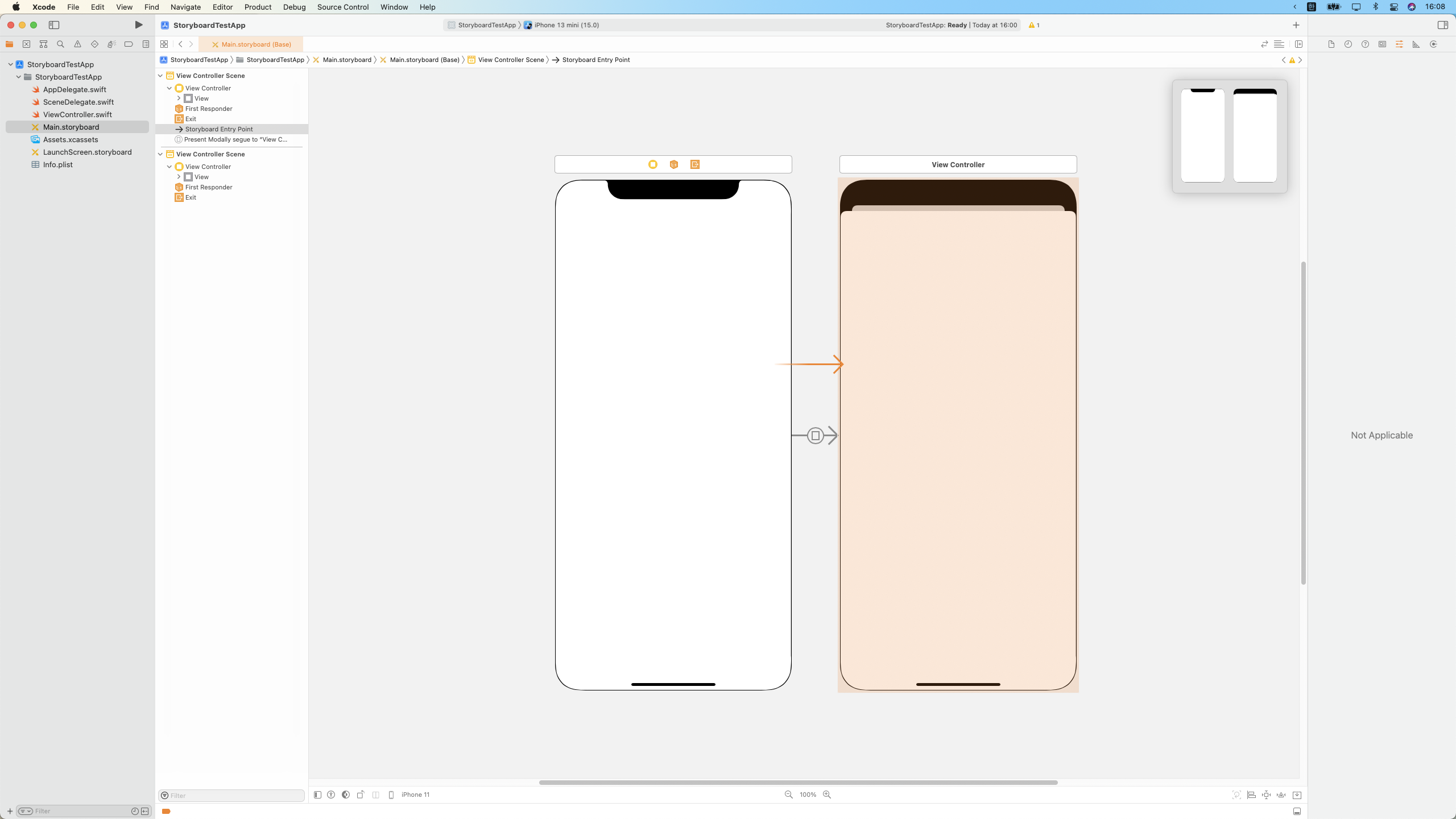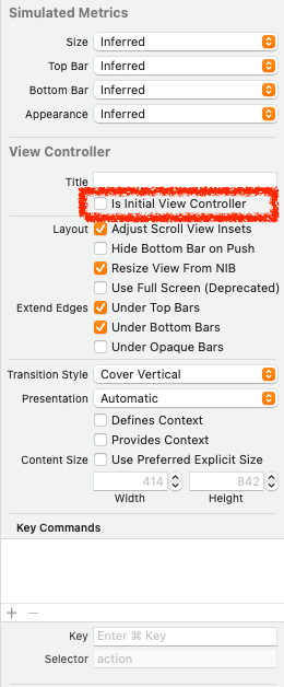 Storyboard에 존재하는 Scene들 중 하나는 반드시 Initial View Controller로 지정되어야 한다.