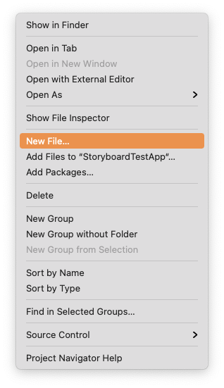 New File 메뉴를 선택해 Storyboard를 생성할 수 있다.