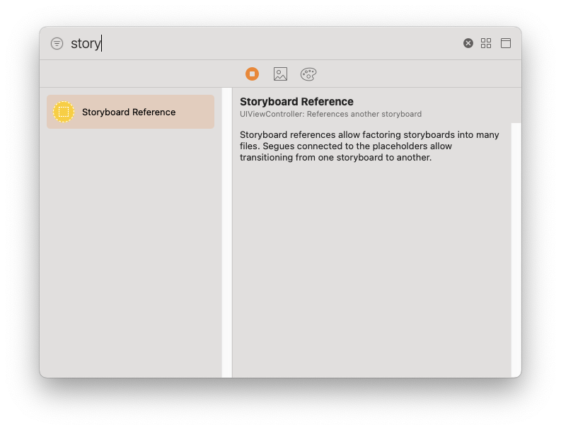 이후 라이브러리에서 Storyboard Reference를 선택해 Canvas에 추가하고,