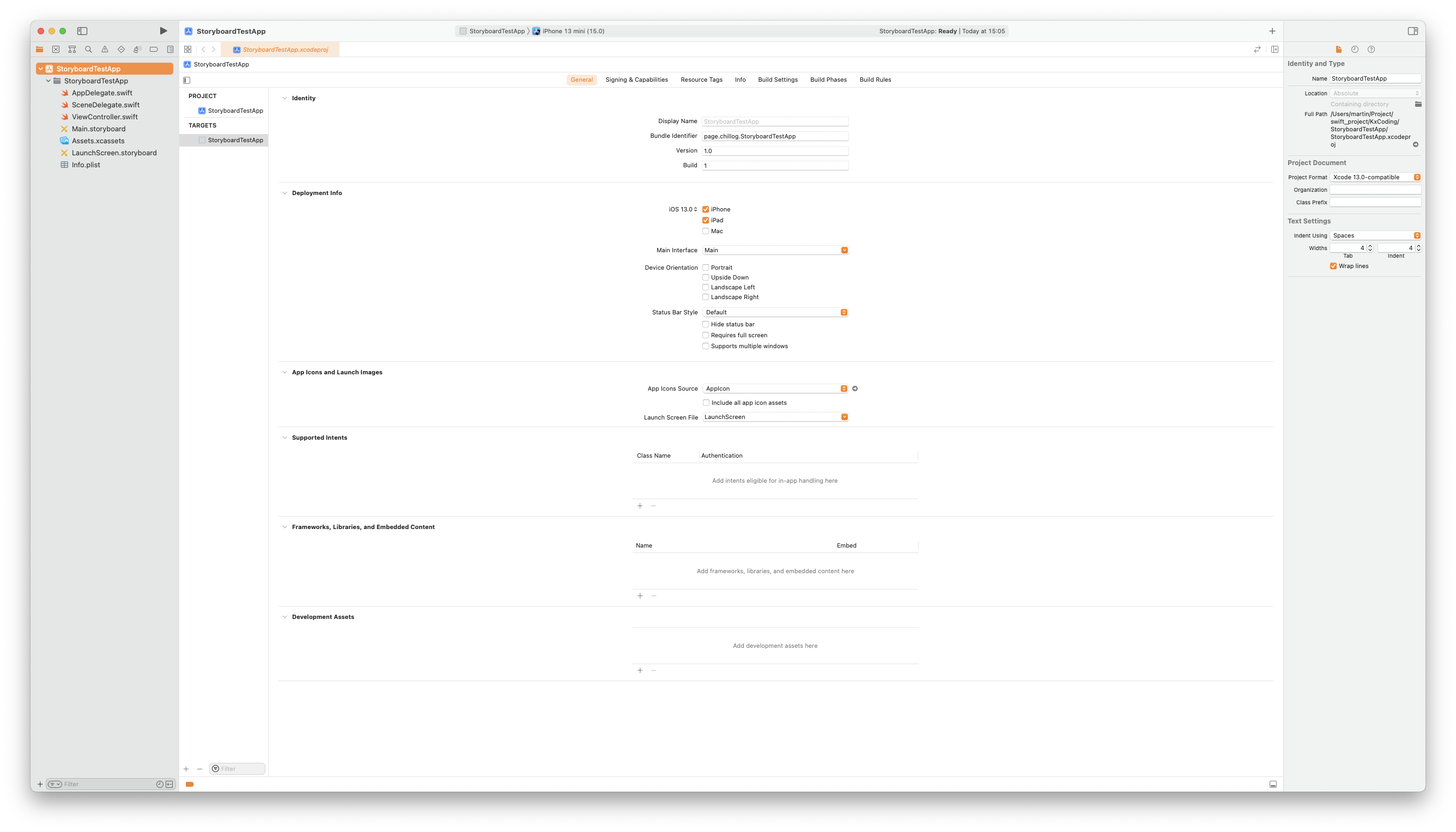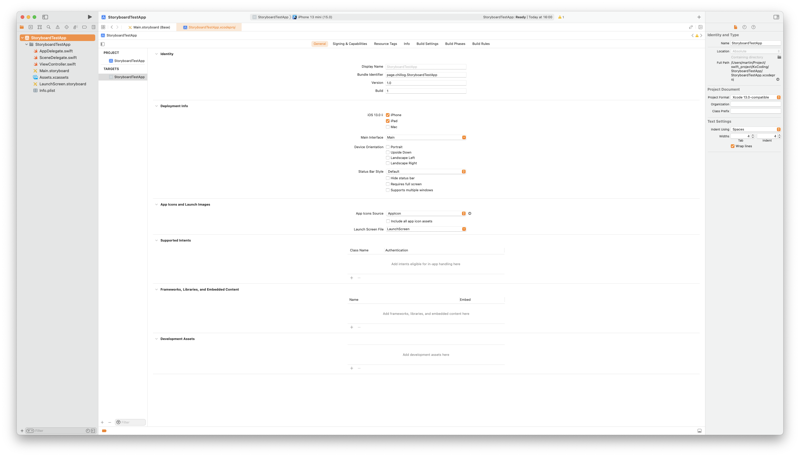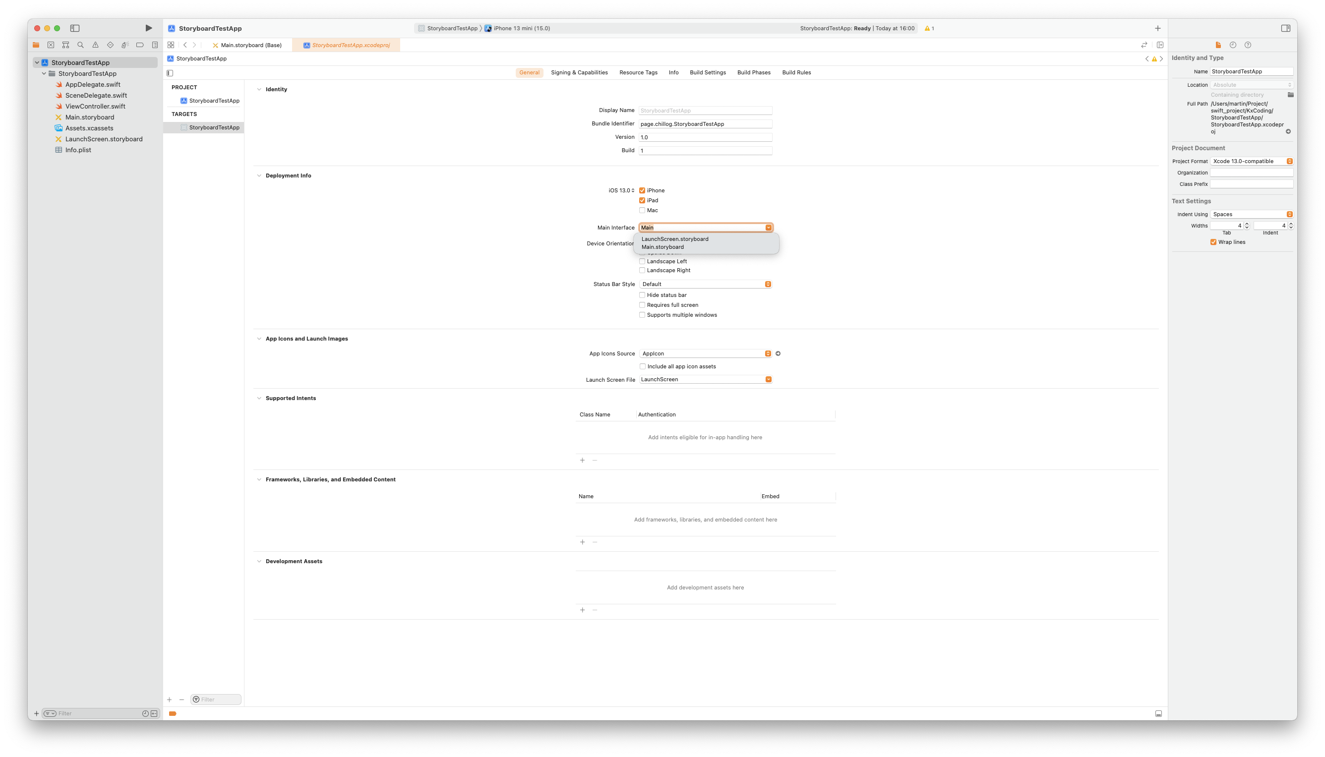 프로젝트 설정의 Main Interface 옵션을 변경해 앱에서 사용될 기본 Storyboard를 설정한다.