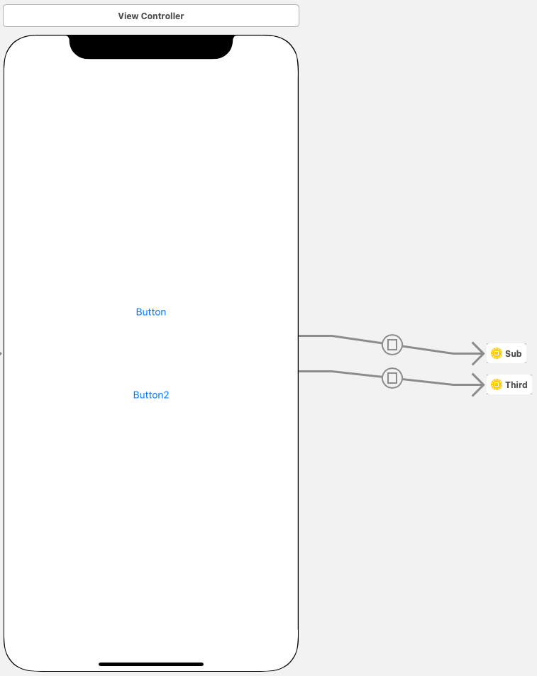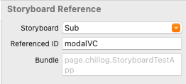 이것은 Sub.storyboard의 'modalVC'라는 Storyboard ID를 가진 Scene과 연결되어있다는 의미이다.