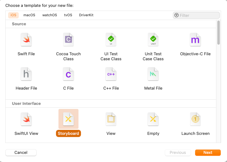 New File 메뉴를 선택해 Storyboard를 생성할 수 있다.