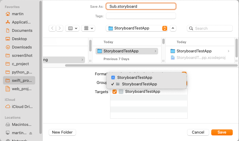 이어서 대상 Storyboard를 storyboard 속성을 통한 Optional Binding에서 subStoryboard 인스턴스로 지정하는 것으로 수정한다.