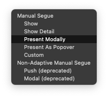 Present Modally를 선택하면 위처럼 연결된다.
