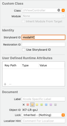 Referenced ID는 modalVC로 설정되어있다.