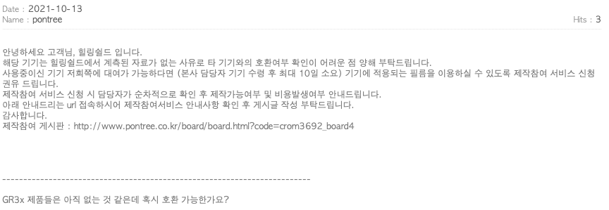 GR 3와 치수가 같은가 싶어 GR 3 제품에 GR 3x와 호환이 가능한 지 문의를 남겼고,