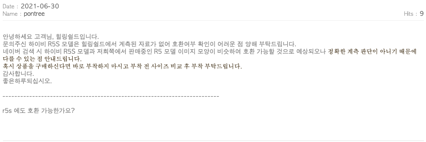 Hiby R5 필름이 R5s와 호환이 가능한지 물어봤을 때와 조금 다른 뉘앙스의 답변이 온 것이다.