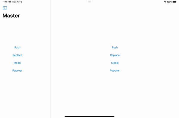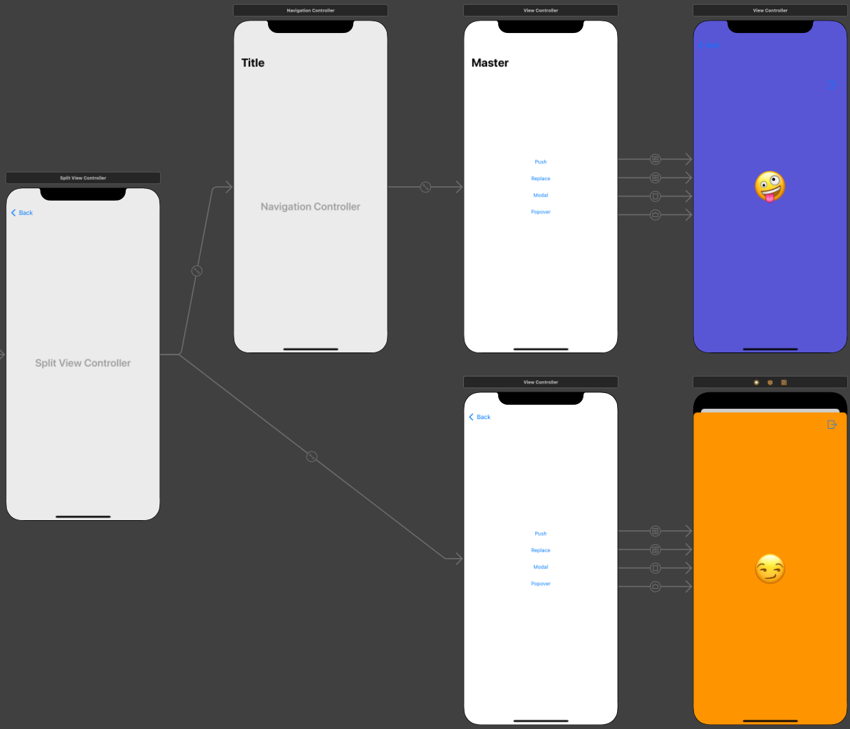 Replace Segue는 Splitview Controller에 연결되어있지 않으면 Modal 방식으로 표시한다.